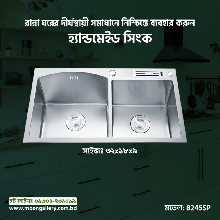 8245-SP 32x18x9 INCH HIGH QUALITY STAINLESS STEEL HANDMADE DOUBLE BOWL SINK